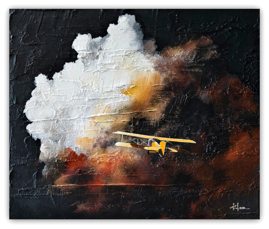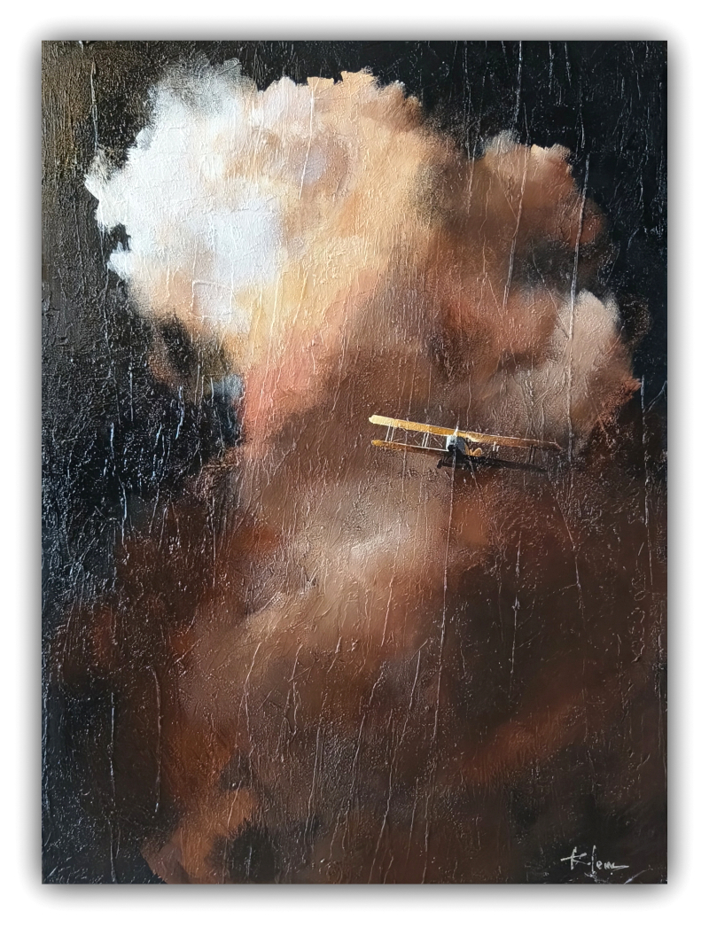 Mes ciels sont tourmentés, j'ai voulu que mes toiles le soient tout autant.